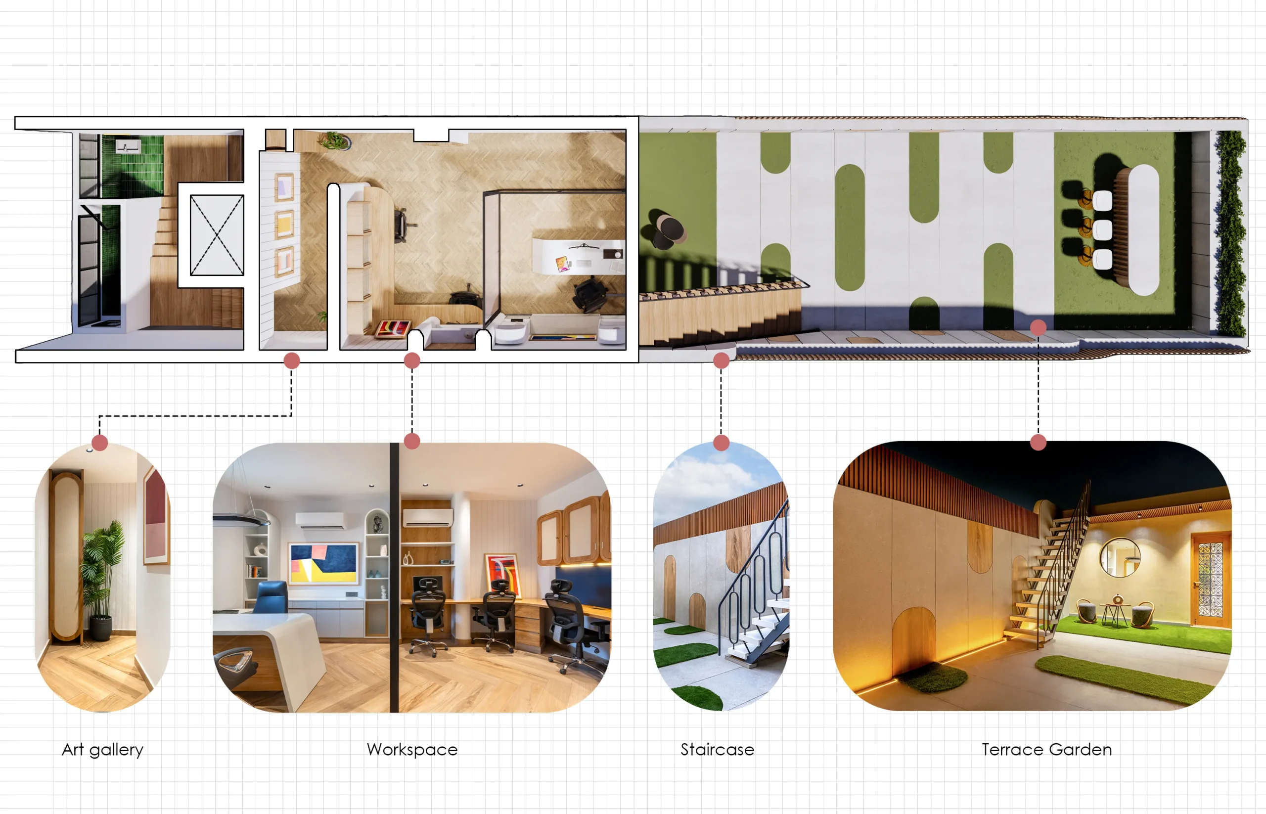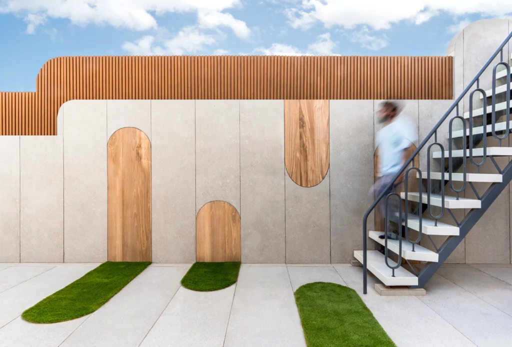 At the heart of the design is the attached outdoor terrace garden, symbolizing the tree that supports and nurtures the nest. This green sanctuary offers a calm retreat from the urban setting, enriching both the aesthetic and functional quality of the office. It becomes a natural extension of the interior, promoting well-being, focus, and productivity. Organic Modernism comes to life here, where nature and contemporary design merge to create a seamless, tranquil workspace.